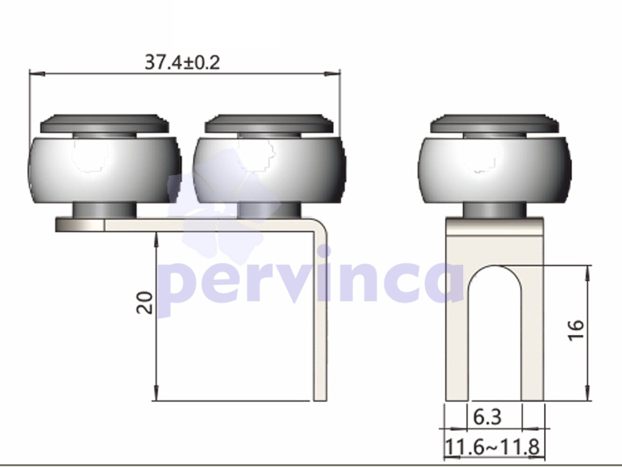 PRVI-106-608A06375B-118608A/1.0/1.4/6/37.5/11.8mm Rueda inferior: espesor: 1.0 Tornillo (M): 6 Tipo de tornillo: estándar Upper roller: width: 37.5 ±0,2